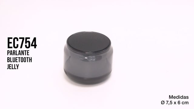 Ø 7,5 x 6 cm. Parlante Bluetooth estéreo. ABS transparente con malla metálica en la parte superior. Botones en color negro. Led que cambia entre 7 colores y 8 modos de luz para elegir. Potencia 3W. Versión Bluetooth: 5.0. capacidad de la batería: 500 mAh. Cable de carga y conexión USB-C en color negro. Presentación en caja de regalo.